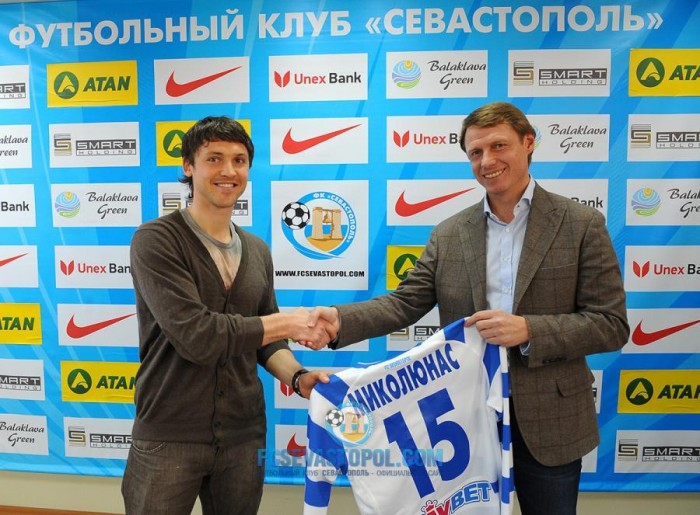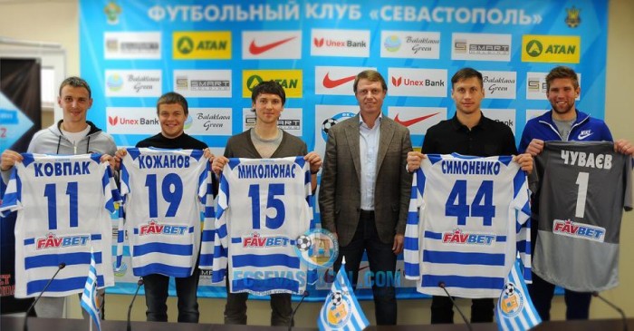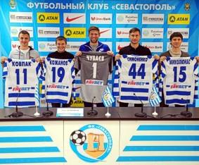 В конференц-зале СК «Севастополь» прошло официальное представление новичков футбольного клуба «Севастополь». Напомним, что в нынешнее зимнее межсезонье состав нашей команды пополнили вратарь Олег Чуваев, защитник Сергей Симоненко, полузащитники Денис Кожанов и Саулюс Миколюнас, а также нападающий Александр Ковпак.