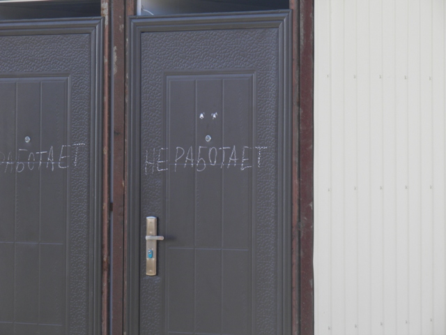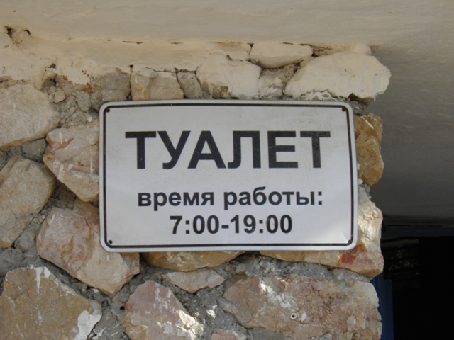 Увидев, наконец, указатель, мы последовали за ним, однако нас постигло разочарование, так как туалеты не работали. Кое-как отыскав другую стрелку, мы подошли к тому самому месту, о котором говорилось в сообщении возмущенной жительницы Севастополя. Действительно, надпись на вывеске гласит о том, что открыт туалет исключительно с 7:00 до 19:00. Остается лишь гадать, где справляют нужду многочисленные отдыхающие, которых с каждым днем становится все больше.