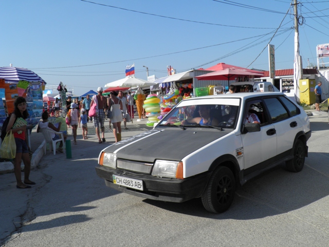 Пройдя аллею, мы подошли к небольшому перекрестку, за которым следует пляжная зона. Как оказалось, пройти здесь не совсем просто: обилие проезжающих автомобилей часто останавливает пешеходов, вынужденных в опаске выглядывать из-за припарковавшихся машин.