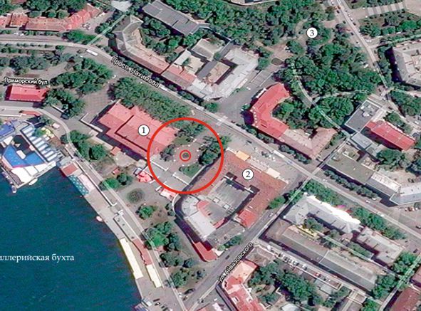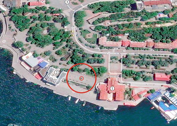 Участок 1-Б Между театром им. А.В.Луначарского и боковым фасадом гостиницы "Севастополь" чуть ниже к морю на промежуточной террасе