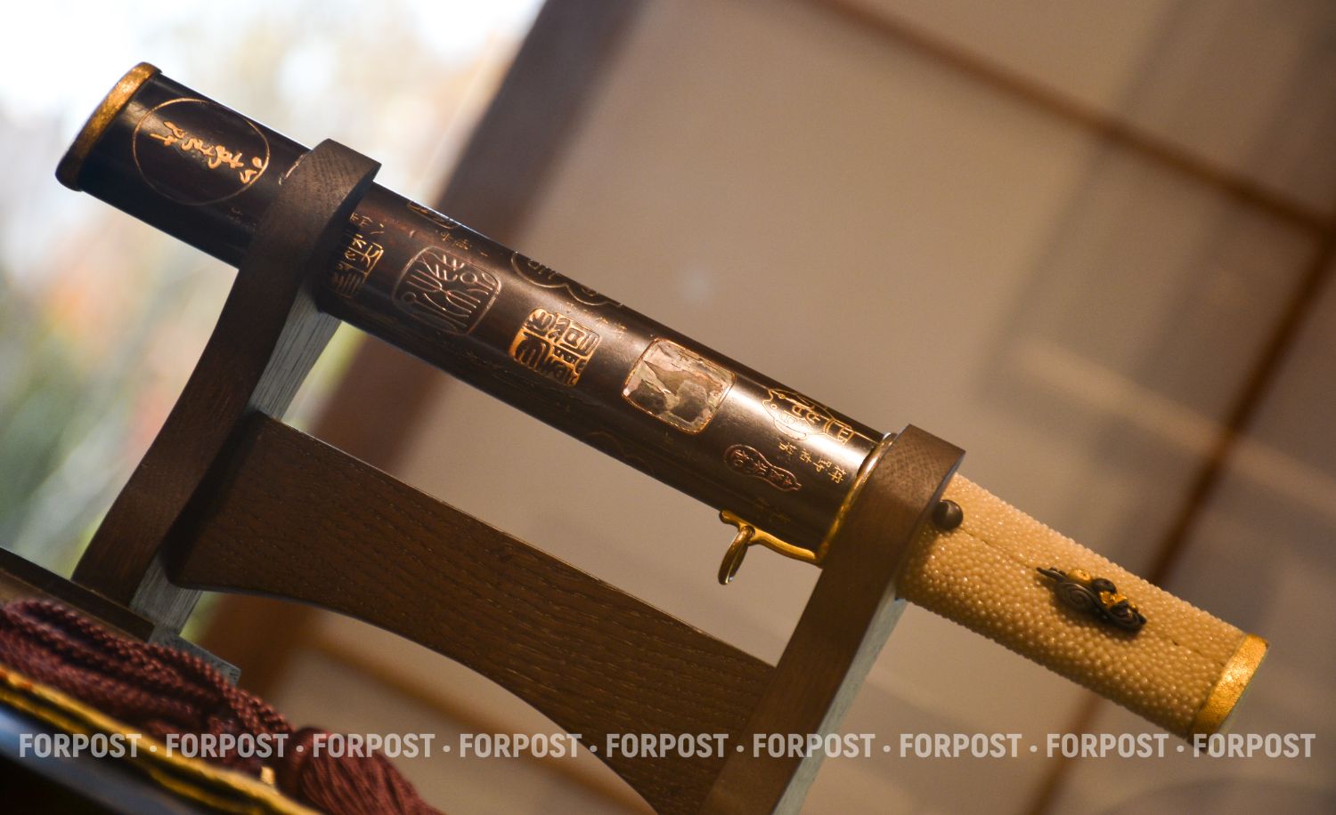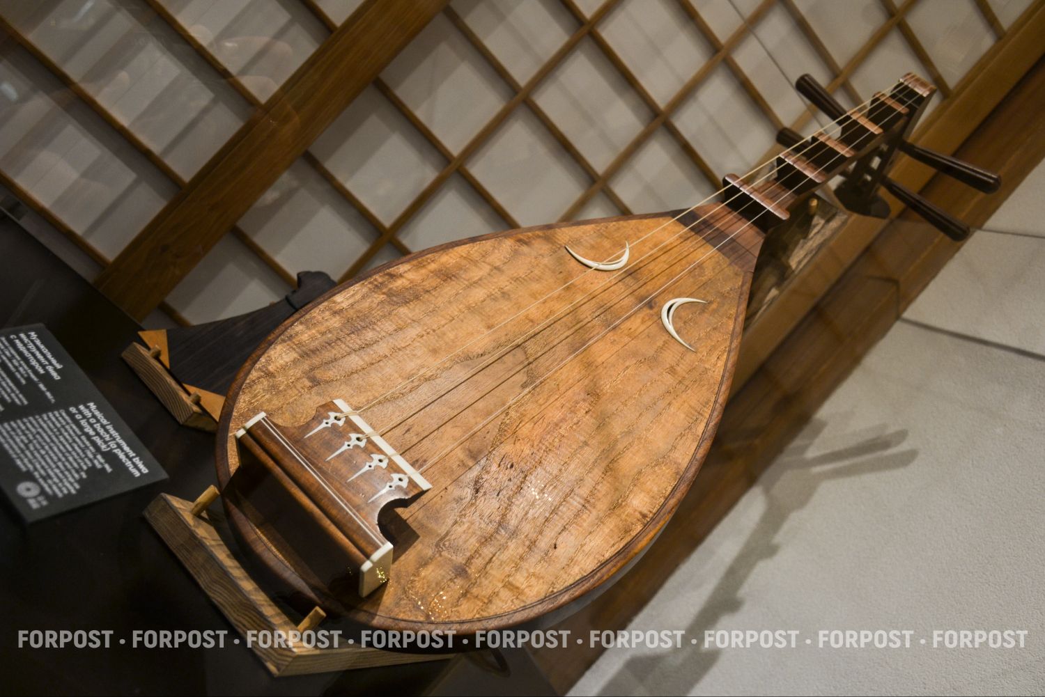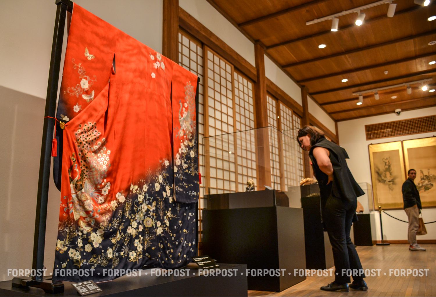 А вот винтажные кимоно, развёрнутые для наглядности, холодное оружие, предметы быта и музыкальные инструменты.