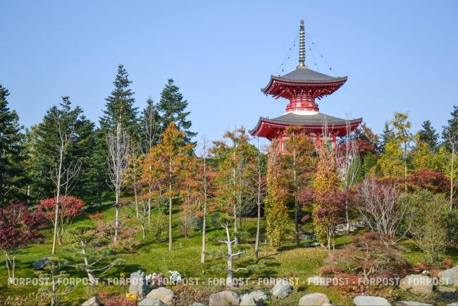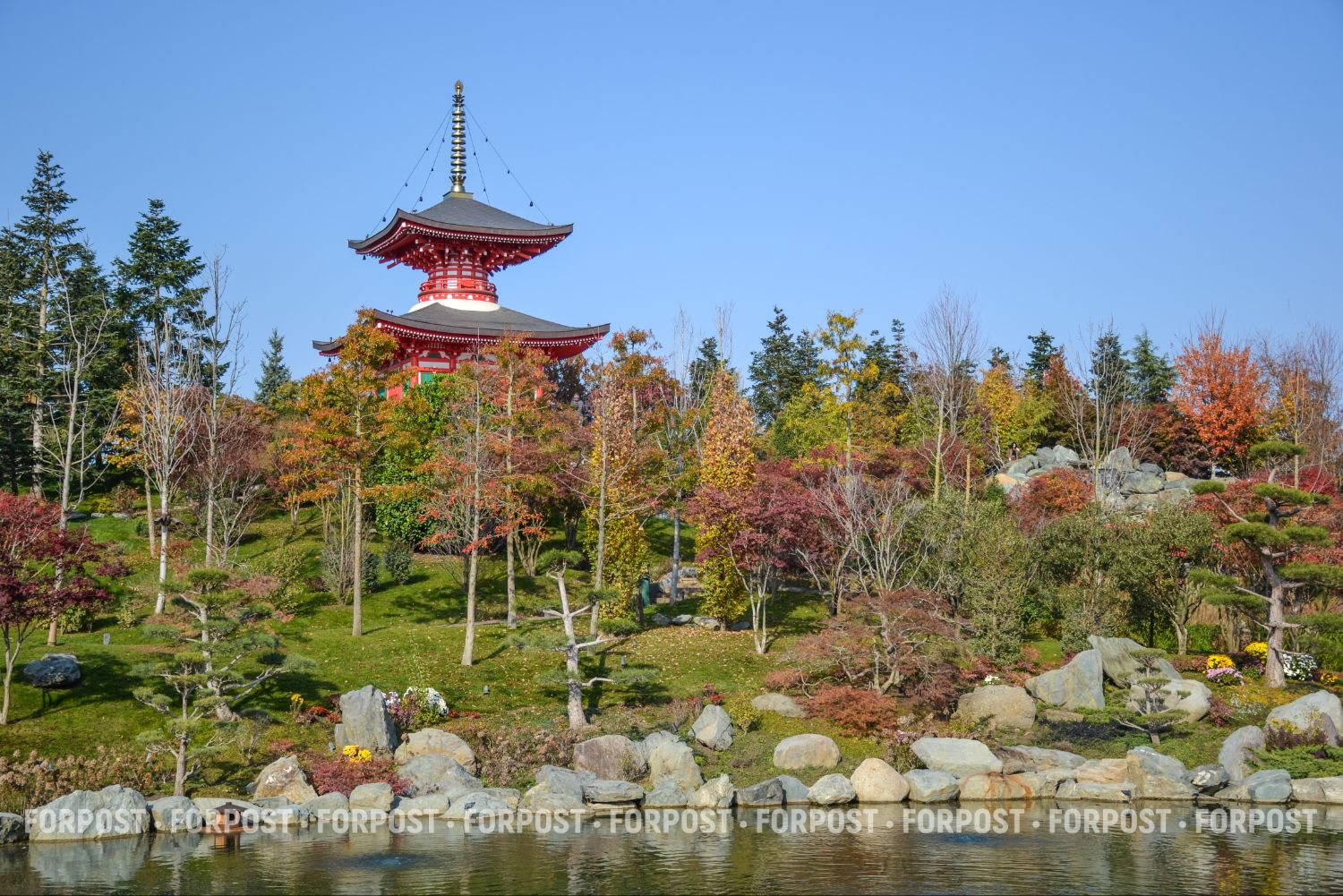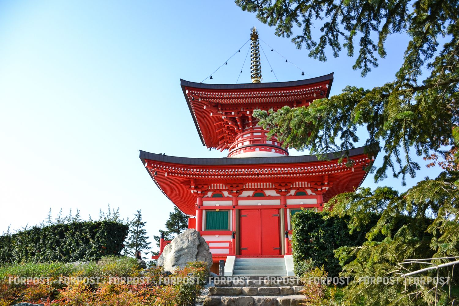 Изюминкой Японского сада можно считать ярко-красную пагоду Тахото. Она возведена на высоком холме и видна из почти любой точки.