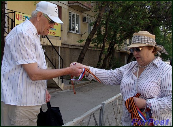 В этом репортаже рассказано лишь об одном эпизоде, как в Севастополе 6 мая 2013 года на перекрёстке Толстого/Коммунистической распространялись Георгиевские ленточки и ленточки с Российским триколором, закупленные на средства интернет-сообщества Москвы.