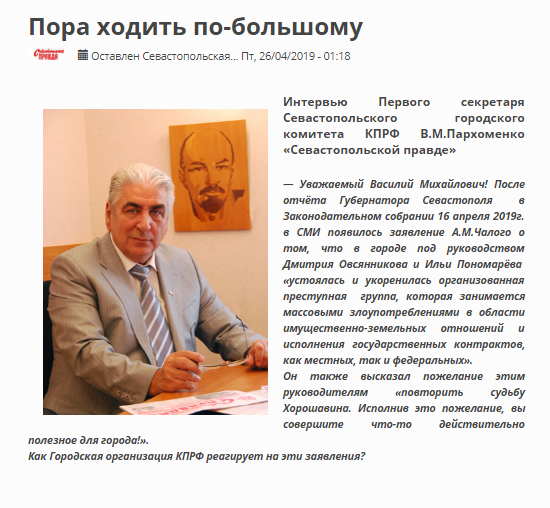 Отметим, что, несмотря на подчёркнутую внешнюю оппозиционность, коммунистам Севастополя успешно согласовывает протестные митинги против «Единой России» городское правительство. Члены которого, как и сам губернатор Дмитрий Овсянников, являются членами «ЕР». Кроме того, большое удивление вызвал состоявшийся ранее митинг КПРФ, на котором исполнялась хвалебная песня в честь члена политсовета реготделения «ЕР» Севастополя Антона Шкаплерова.