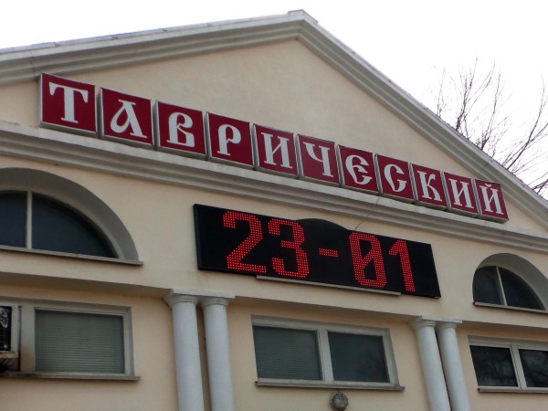 Температура воздуха +15, время 12-00, дата 23 января – всё это пассажиры общественного транспорта, проходящегося через площадь Восставших, могут прочесть на электронном табло на фасаде торгового центра «Таврический». Далее обычно следуют рекламные объявления. И так – круглосуточно. Без выходных и перерывов на обед. В солнечную и дождливую погоду. Удобно – не правда ли?