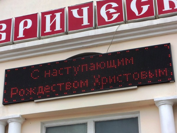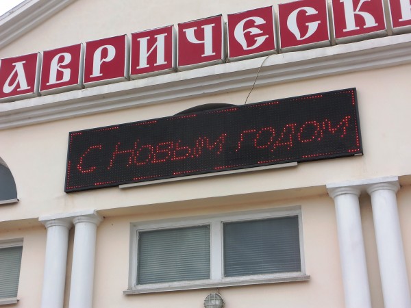 Например, на бегущей строке «Таврического» вслед за утратившим актуальность «С Новым Годом» с регулярной периодичностью появляется и вовсе обескураживающее «С наступающим Рождеством Христовым»!