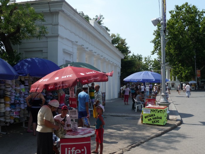 Властям, а именно Ленинской райадминистрации, абсолютно безразлично то, что вытворяют с Графской пристанью и Приморским бульваром лоточники и торгаши. Деньги получены... Остальным властям тоже до лампочки, выборы на носу - какие там торговцы, тут как-бы на кресле усидеть, да продолжать грабить да пилить. Милиция которая по идее должна разгонять этот беспредел, свои сребренники получают, зачем им гнать корову которая приносит денег? Странные вы какие-то, скоро у Вечного огня - шляпами и очками начнут торговать, а что, святого то уже ничего не осталось. Все на продажу...