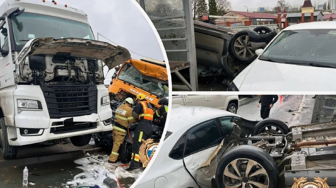 Массовое ДТП с участием двух грузовиков и 10 легковых автомобилей произошло в Уфе. В результате погибли два человека, пострадали восемь.