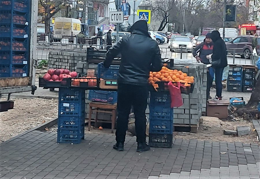 Пример: собственники Приветливого по украинским разрешениям, продлеваемым ДИЗО, заняли тротуар цветочным павильоном, а в суженном проходе выставили при Украине ряд лотков. Между лотками и дверями с рекламными щитами ширины остается около 2 метров, если у лотков остановились покупатели, на проход там остается около метра. Люди с ребенком, коляской, сумками, собакой, велосипедом там протискиваются, а иногда выжидают очередь, чтобы пройти через эту выгодную Развожаеву, Жукалову и Ксенофонтову барыжную аллею - вытянутое игольное ушко. Никакой полицейский туда не сунется на разборку, пока ему не разрешит Гищенко, а Гищенко не поднимет часть тела из кресла, пока его не попросит Развожаев. А тот из кресла вообще не поднимается по таким пустякам, здоровье жалеет. Пока нет частых драк, травм, пожара, никому не интересно убирать с тротуара этот украинский захват.
