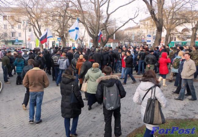 28 января вечером на главной площади Севастополя состоялся антифашистский митинг. На него пришли тысячи горожан. Не было партийных флагов.