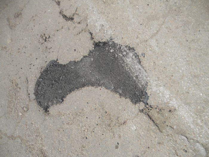 И подобное безобразие уже перешагнуло недельный срок. Глубина латок разная и по уму закатываться должны разные фракции в асфальтобетоне. Если глубина до 10 см, то нижний слой делается из крупной фракции, верхний - из более мелкой.