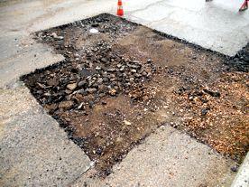 Самое примечательное, это наличие старых кусков асфальта в виде подсыпки ямы. Не буду уже намекать что это неправильно, но очень часто так мостят многие ямы нашего города.