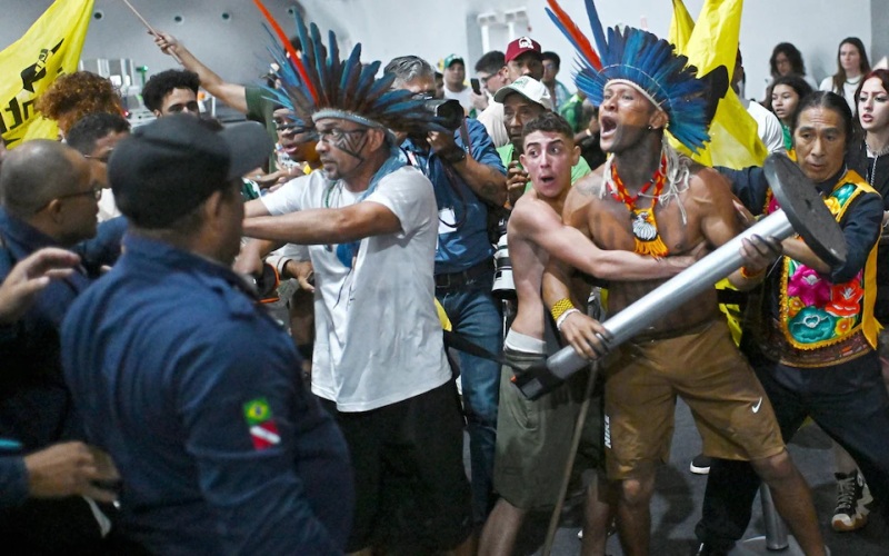 Десятки протестующих из числа коренных народов, размахивая дубинками, ворвались на климатический саммит Cop30 в Бразилии, требуя усилить защиту лесов, сообщает The Telegraph.