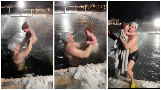 В Сети появилось видео, которое вызвало бурную общественную реакцию. На нём видно, как мужчина погружается в ледяную прорубь вместе маленьким ребёнком.
