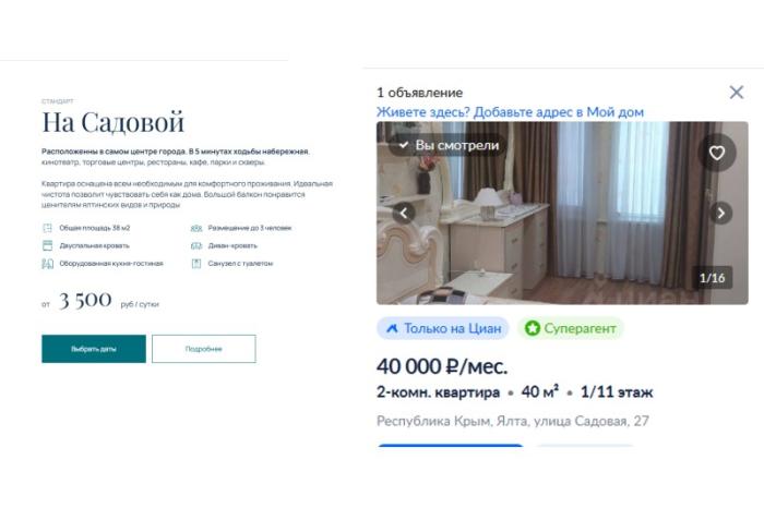 Например, одна сеть апартаментов в Ялте предлагает всем желающим арендовать «квартиры» по цене от 3,5 до 16 тысяч рублей за ночь. Месяц проживания в таком жилье в лучшем случае обойдётся в 105 тысяч. При этом двухкомнатная квартира, соседствующая с самыми дешёвыми апартаментами, стоит всего 40 тысяч рублей за месяц.