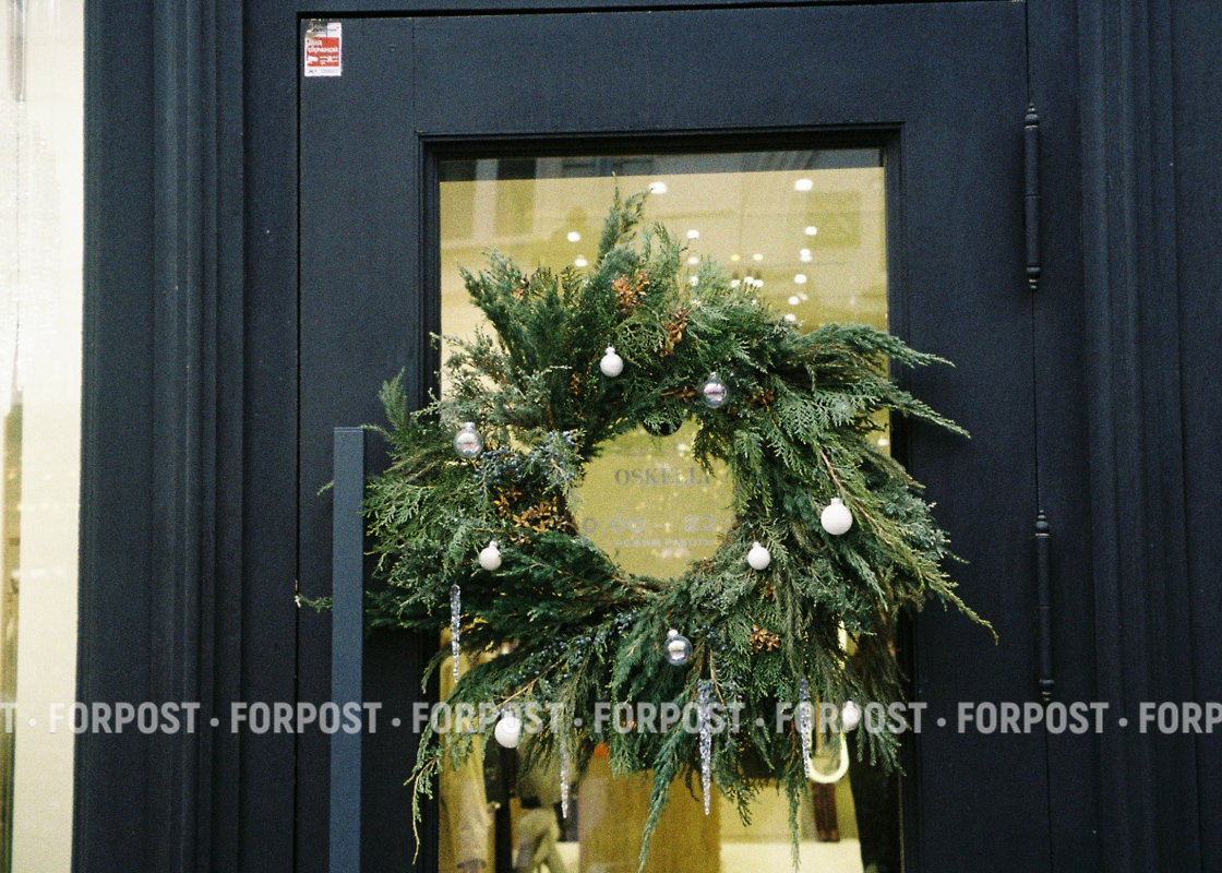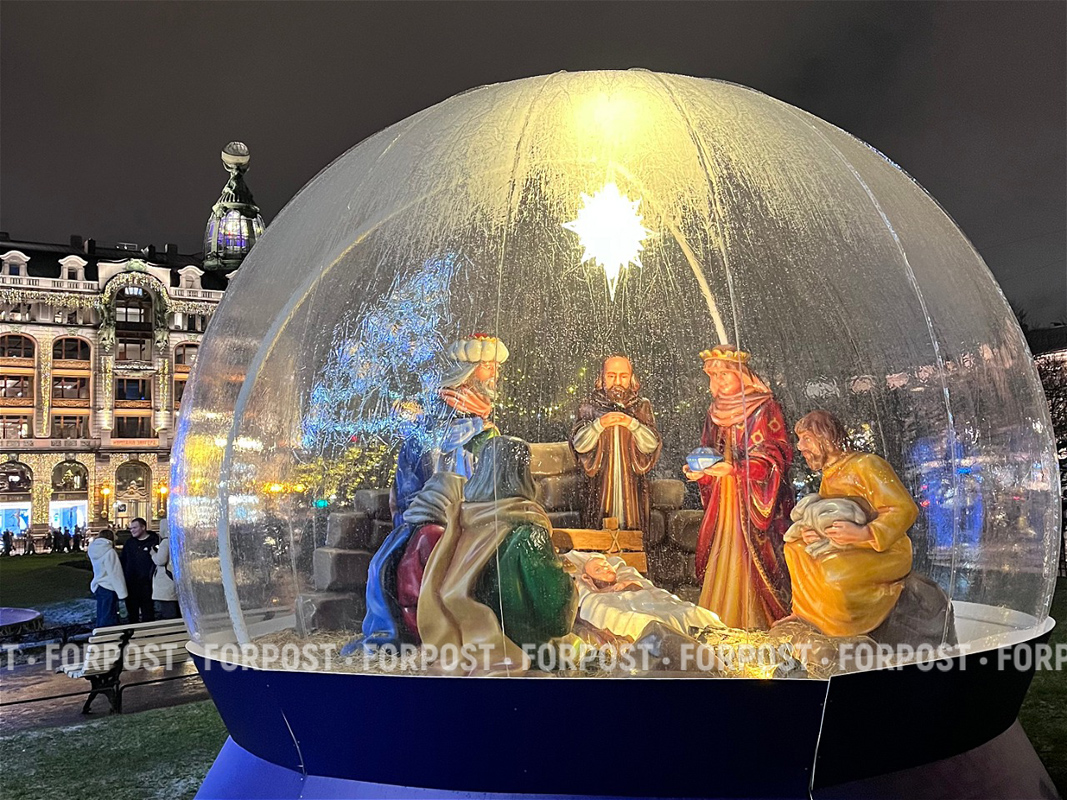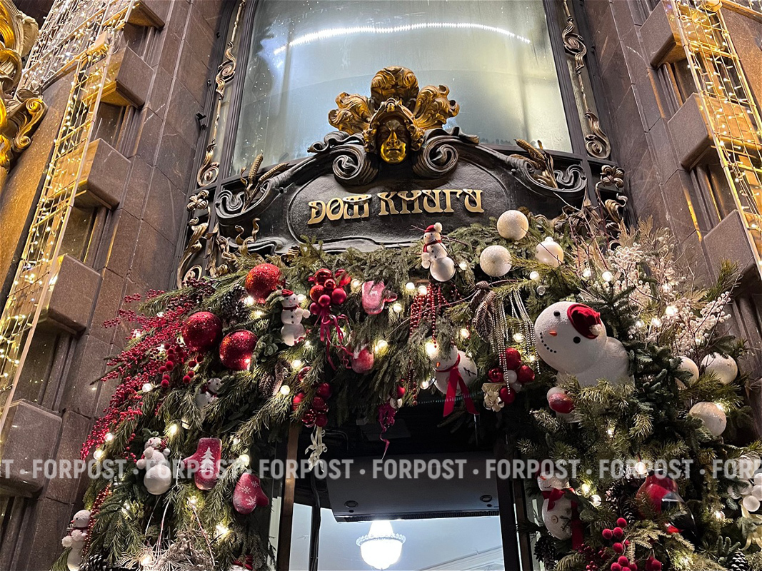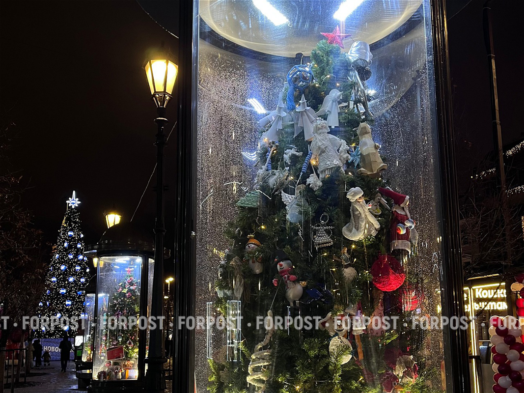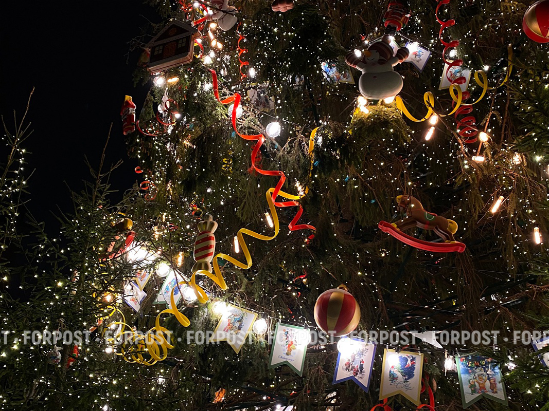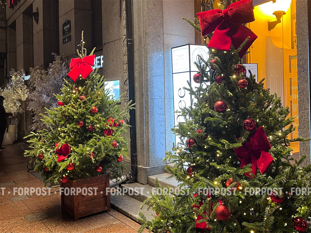 На улицах города акцент также сделан на праздничных елках, мерцающих огнях и разноцветных шарах.