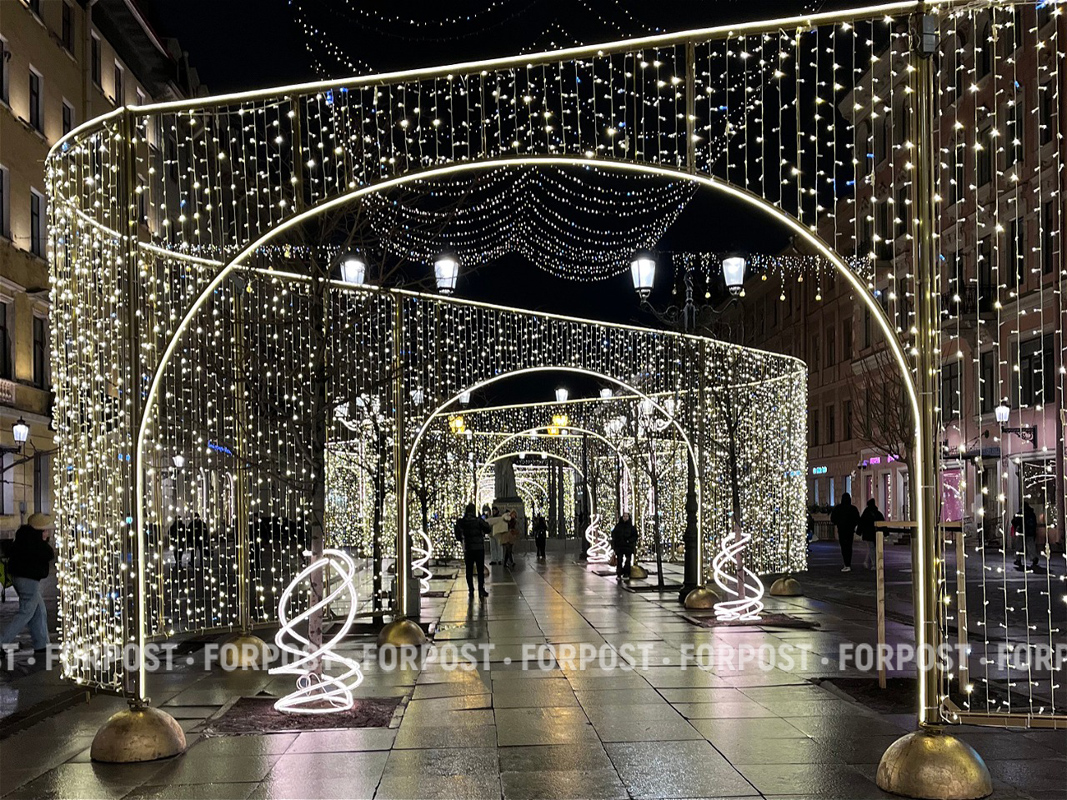 Невский проспект традиционно выступает визитной карточкой города, это 4,5 км от Адмиралтейства до Александро-Невской лавры. На Невском жителей и гостей города поджидают знакомые мерцающие короны и светящийся небосвод. Главное во время прогулки по проспекту – не зазеваться и успеть сделать памятные снимки.