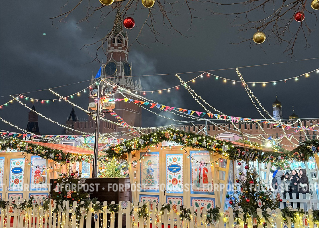 ГУМ на Красной площади украсили маленькими, но атмосферными елками. На самой площади развернулись ярмарки.