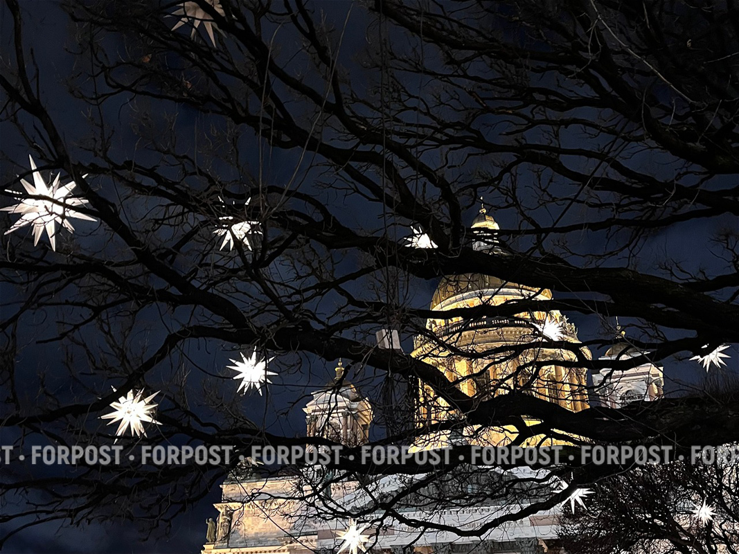 Если говорить про величественные соборы, то стоит упомянуть и украшения Исаакиевского собора. Само здание оставили без изменений, а сад возле украсили белоснежными звездами, которые создают ощущение спокойствия и умиротворения.