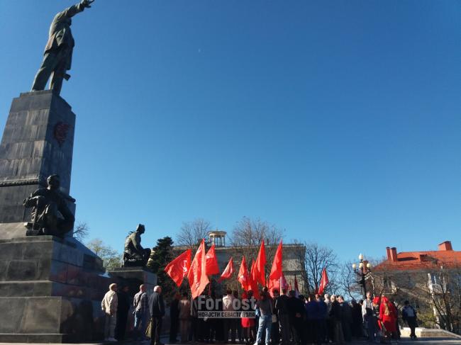 В Севастополе члены горкома КПРФ отметили очередную годовщину Октябрьской революции. Коммунисты возложили цветы к памятнику Владимиру Ленину, расположенному возле Владимирского собора на центральном городском холме.