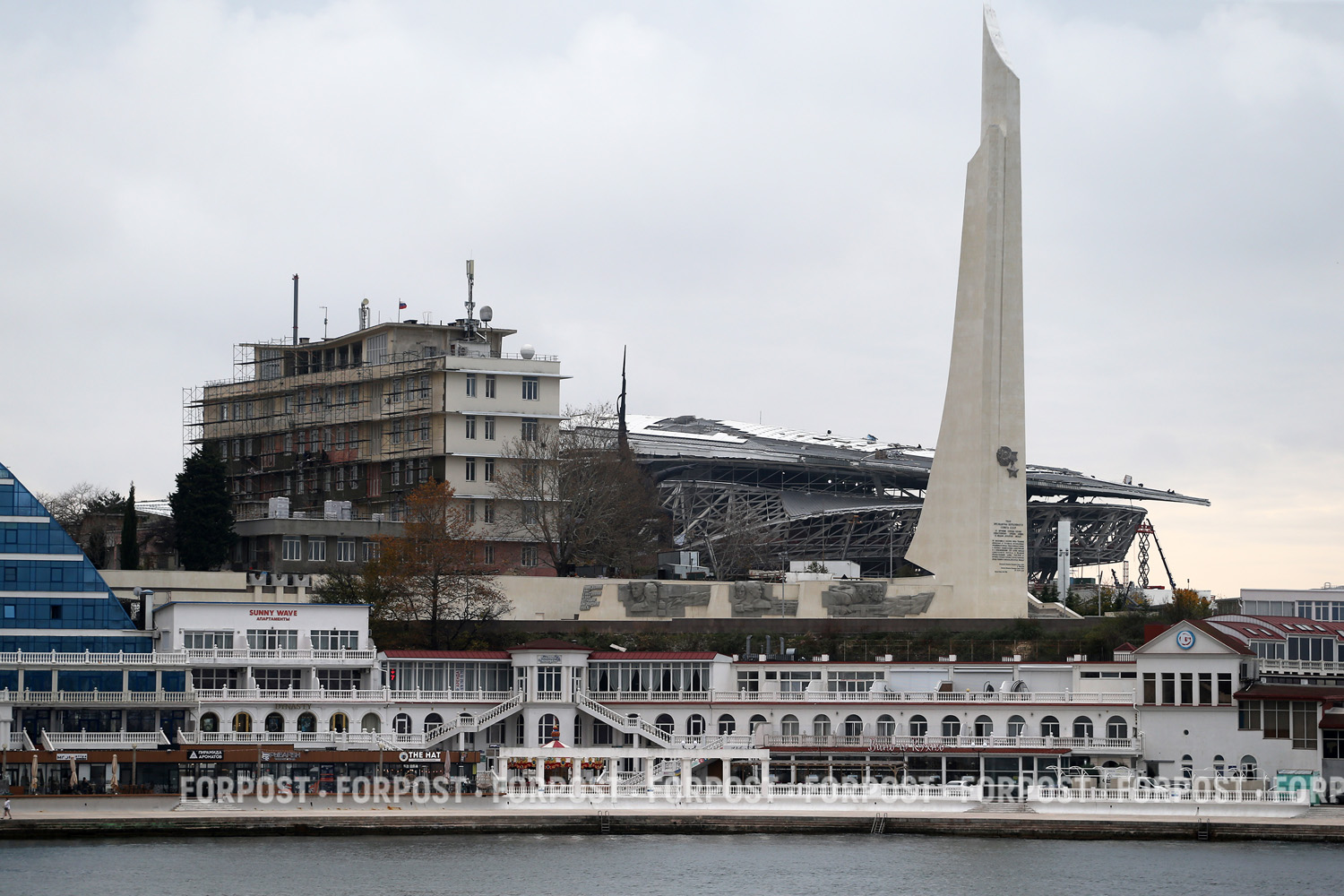 Тут уже дело не только в том,нравится кому-то внешний вид или нет.Все гораздо хуже:это хамская,циничная подмена исторических ценностей Севастополя,плевок в лицо севастопольцам,не согласных превращать знаковое место форта Меншикова и обещанного Президентом В.Путиным ветеранам Мемориального комплекса защитников Севастополя 1941-42г.г. с музеем и парком в громады металлопроката и стеклоблоков,похоронивших недострой Мемориального комплекса.