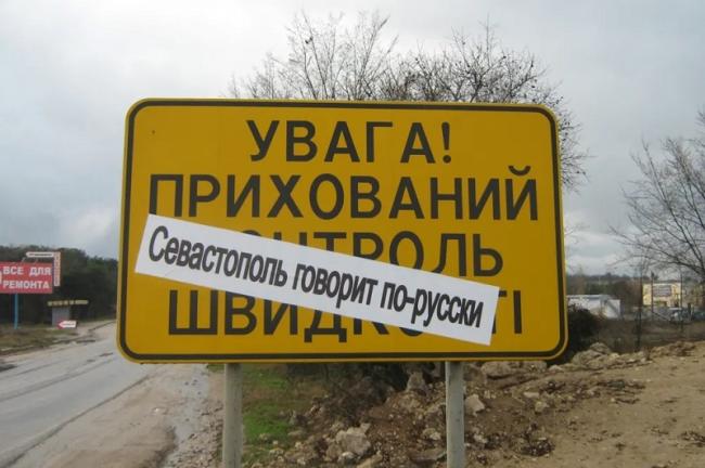 «Следуя курсу незабвенного Виктора Ющенко „Думай по-украински”, чиновники севастопольской администрации приняли решение о массовом переводе дорожных знаков на украинский язык. В результате на обочинах дорог появились малопонятные „Дякуемо за чисте узбіччя”, „Увага прихований контроль швидкості”, „Увага небезпечна ділянка”. Особое возмущение горожан вызывали переводы привычных улиц и наименований: „Діорама”, „вул. Сапунгірська”, „бух. Камишова” и т.п», — писал ForPost в 2009 году.