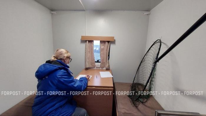 «Это вагончик, где находится всё необходимое, чтобы оказать первую помощь для водоплавающей птицы. Вот здесь СИЗы (средства индивидуальной защиты — Прим.), дезинфицирующие средства, сачок, чтобы выловить тех, кто в воде», — показывает оснащение поста сотрудница Евпаторийского городского ветеринарного лечебно-профилактического центра Валентина Сильниченко.