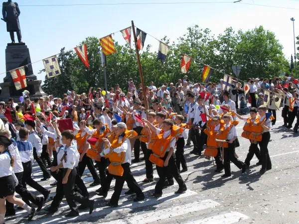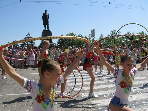 В этот день по городскому кольцу прошли торжественным маршем воспитанники севастопольских общеобразовательных и спортивных школ, Малой академии наук, клубов и секций, других детских коллективов города. На импровизированной трибуне праздника вместе с главой города Владимиром Яцубой и заместителем председатель городской государственной администрации Артуро Бабенко участников праздничного шествия приветствовали председатель городского Совета Юрий Дойников, представители ветеранских, общественных организаций города.