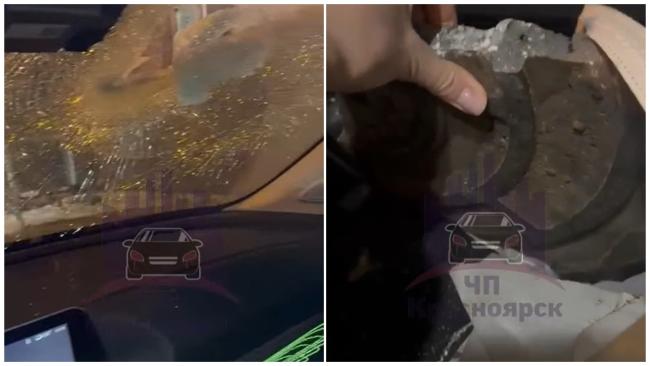 На дороге в Красноярске произошел случай, который мог закончится трагедией. Кусок канализационного люка чуть не убил маму с маленькими детьми, когда влетел в автомобиль через лобовое стекло.