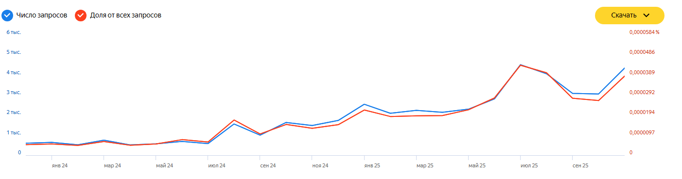 Сервис Яндекс.Вордстат, который предоставляет информацию о том, сколько раз пользователи вводили тот или иной запрос в поисковик, фиксирует резкий рост запросов с тегом «роблокс».