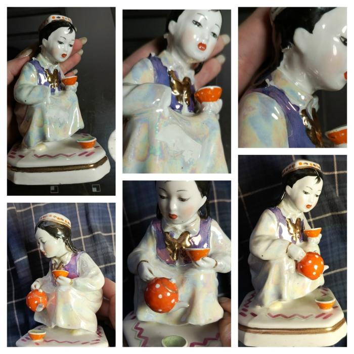 Дина показывает фотографию статуэтки «Казашка с чайником» Дулёвского фарфорового завода. Она была сделана в 50-е годы XX века в СССР. На реставрацию фигурку девушке принесли из антикварного магазина.