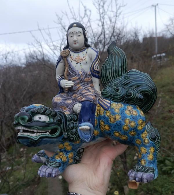 Другая интересная частичка коллекции Дины — человек на драконе — предположительно была сделана в Японии в XIX веке. Её особенность — сложная ручная роспись: очень тонкой кисточкой неизвестный мастер нанёс несколько тысяч мелких мазков. Похожую, но не совсем такую фигурку художница обнаружила на сайтах по продаже антиквариата в Германии. Именно там продавец и поделился сведениями, утверждая, что это японская фигурка XIX века.