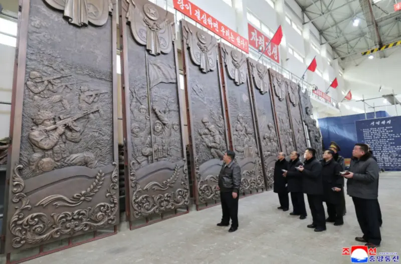 Генеральный секретарь Трудовой партии Кореи, Председатель Государственных дел Корейской Народно-Демократической Республики уважаемый товарищ Ким Чен Ын 25 января посетил художественное объединение Мансудэ, где в настоящее время создаётся скульптурный комплекс для Мемориального музея боевых подвигов в зарубежной военной операции. Так в северокорейском официальном обозначении называется участие северокорейских военных в освобождении Курской области. Его сопровождали представители руководства Трудовой партии Кореи и министр обороны, сообщает ЦТАК.