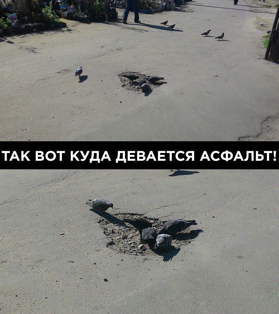 На трассе Таврида, похожие голуби склевали 144, 7 кв. метров дорожного полотна. Только снега было больше.