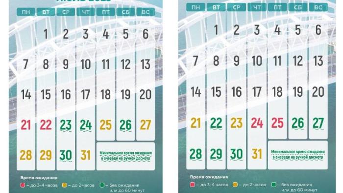 Тем, кто планирует выезжать из Крыма, стоит учесть, что скопление транспорта со стороны Керчи может быть минимальным 22, 26, 27, 28, 29 и 30 июля. При этом, по опыту прошлого года, существует вероятность попасть в пробку и застрять там на 3-4 часа 24 и 25 июля.