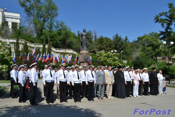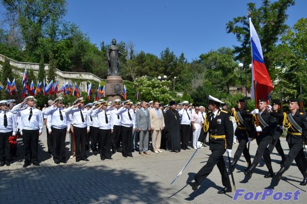 Сегодня в ознаменование Дня России состоялся торжественный подъем флагов на кораблях и в частях флота, а также возложение венков и цветов к памятнику основательнице флота и города Севастополя императрице Екатерине II.