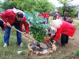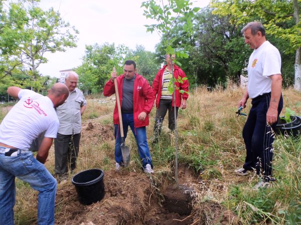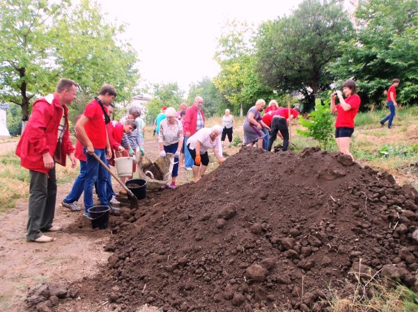 В День Города к «Ульяновцам» на свою акцию пришли и местные комсомольцы. Так «всем миром» и поработали. Несмотря на идущий дождь. Атмосфера на субботнике была очень душевная и тёплая. Стрелецкие активисты хорошо подготовились – завезли машину плодородной почвы, а накануне вырыли солидные ямы, наняв экскаватор. Саженцы оказались качественные, с большим комом земли. «Теперь главное, чтобы их очередной раз не полили отравой, как это уже случилось с платанами. Видите, выпустив листву, вдруг все одновременно пожухли…» - показывает Наталья Абрамова ранее посаженные деревья.