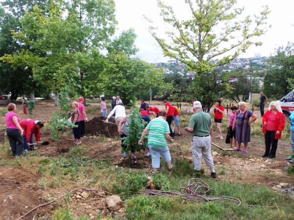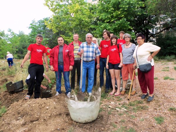 Акцию провелили в ответ на обещание своего лидера, данное им неделю назад на митинге у «Ульяновцев» Название родилось уже в процессе высадки деревьев – Сквер «230-летия Севастополя». На субботник пришло много гостей, вручивших «ценные» подарки – саженцы 6-летних ясеней и платанов, привезённые из питомников Байдарской долины и Симеиза.