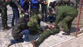 Тяжело раненного сегодня в Донбассе журналиста российского телеканала "Звезда" могут перевезти на лечение в Москву. Вопрос об этом будет решаться, как только врачи дадут добро на транспортировку. Андрей Лунёв - он, кстати, родом из Донецка - подорвался на мине-растяжке сегодня днём в Широкино, когда снимал репортаж о визите в посёлок наблюдателей ОБСЕ. Сотрудники миссии, а также коллеги Андрея, в числе которых был и наш корреспондент Евгений Лямин, стали очевидцами произошедшего.