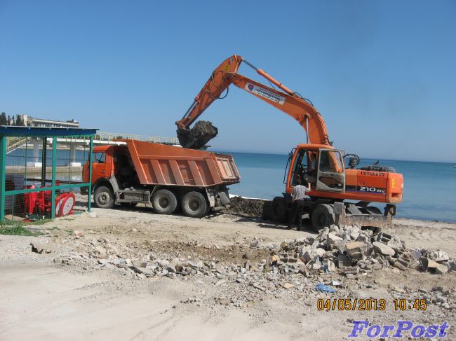 Шерлоки Холмсы и Володи Шараповы (прокуроры, милиция) посмотрите фотографии Экскаватора и КамАЗа с места погрома торговых объектов на Учкуевки в ночь с 18 на 19 марта 2013 г. Вот они преступники и погромщики торговых объектов на Учкуеки вывозят водоросли с пляжа Омега.