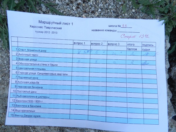 24-й общегородской краеведческий турнир стартовал в минувшие выходные в Севастополе. И девятый год подряд все школы города начали его на городище Национального заповедника «Херсонес Таврический». Каждая из 60 команд на старте получила карту и маршрутный лист с указанием 15 памятников заповедника, которые нужно было найти за два часа. Учитывая, что сотрудники музея в течение последних лет постоянно обновляют опорные точки маршрута, эта задача выглядела непростой.