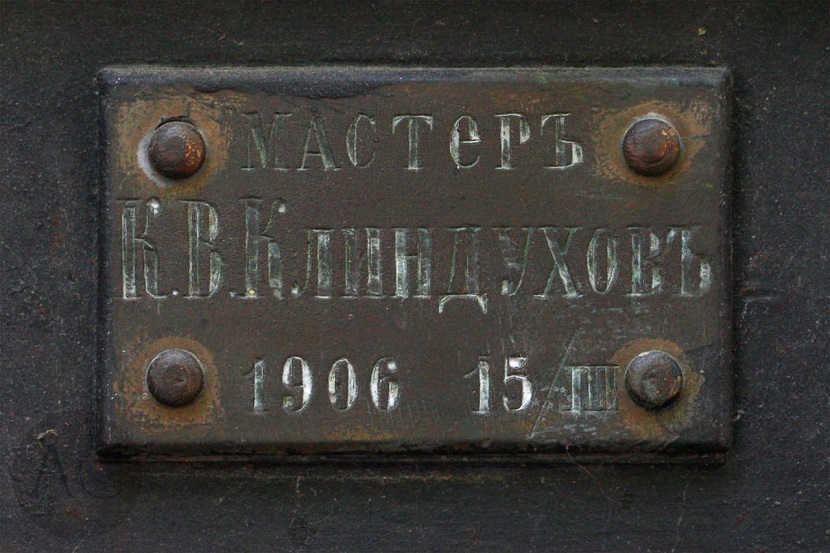 Кроме даты, на табличке указано и имя мастера - К. В. Клиндухов.