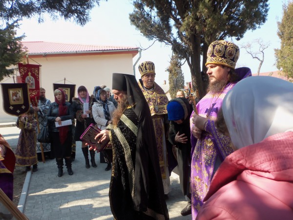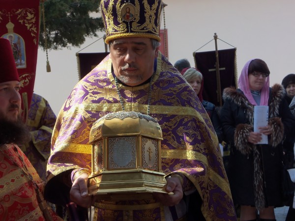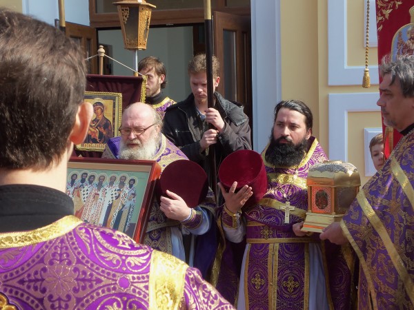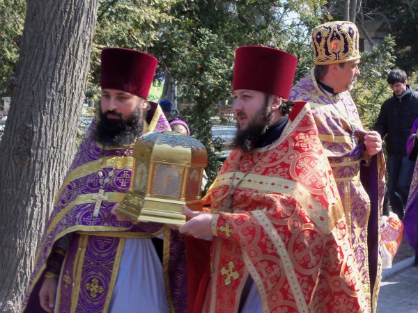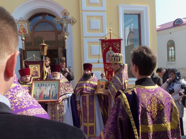 Затем был совершен крестный ход по территории заповедника от Владимирского собора до храма Семи священномучеников херсонесских. Наряду с представителями духовенства и монашества, сопровождавшего святыню, вместе с простыми прихожанами в крестном ходе принял участие директор национального заповедника «Херсонес Таврический» Леонид Жунько. По окончании крестного хода от сказал, что «заповедник не может и не должен оставаться в стороне от столь масштабных торжеств на его территории».