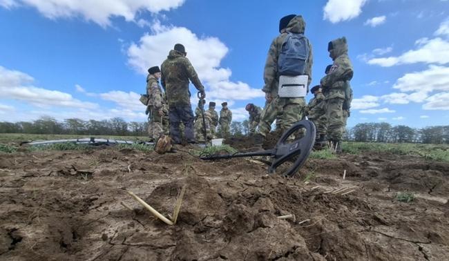 На этот раз поисковики работали неподалёку от памятника 320-й стрелковой дивизии, который установлен на месте боёв за крупный железнодорожный узел — станцию «Владиславовка».