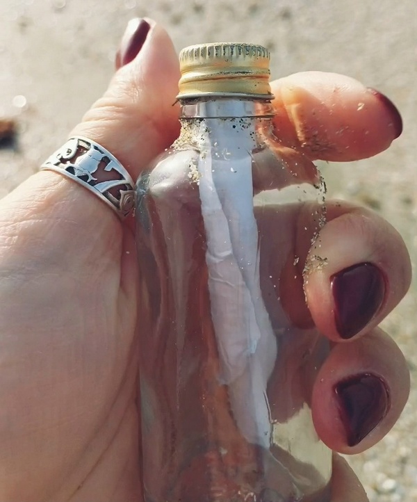 Неожиданная находка ждала инженера по защите экологии ландшафтного рекреационного парка «Ойбурский» на побережье в Сакском районе. Работая на днях на пляже, Евгения Стельмахова наткнулась на стеклянный сосуд с запиской внутри. Прочитав послание, крымчанка решила найти его автора.