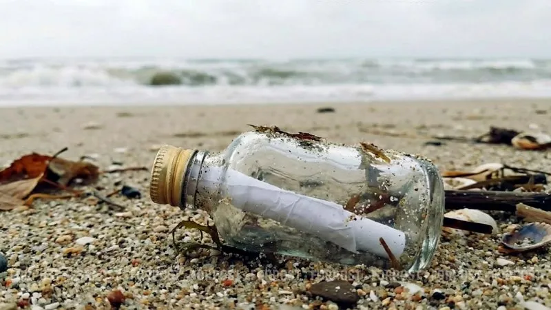 Рассмотрев сосуд, она заметила внутри бумажный свёрток. Заинтригованная девушка поспешила достать содержимое: абсолютно сухой лист бумаги оказался заполнен словами. Но, увы, сходу прочитать послание не удалось — запись оказалась на незнакомом языке.