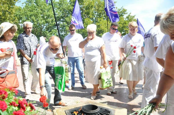 «…Встреча началась с прохождения по центральной улице Севастополя и возложения цветов к мемориалу защитникам Севастополя 1941-1942 года. …».