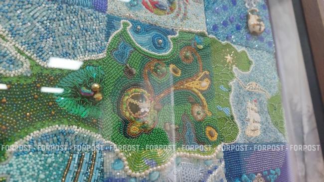 Панно размером 96,5х60 сантиметров «Бисерная карта Крыма» недавно выставлялось в Москве, где представляло республику на художественно-промышленном форуме «Уникальная Россия — 2026». Сейчас необычное произведение декоративного искусства вернулось домой и украшает один из залов Музея истории города Симферополя.