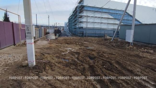 Строительство крытого ледового катка в районе улицы Генерала Мельника, который власти Севастополя обещали сдать ещё к Новому году, обернулось для жителей соседнего ЖСК «Тополёк-2» тяжёлыми коммунальными проблемами. Во время прокладки инженерных коммуникаций к объекту рабочие разрыли единственную подъездную дорогу, а размещение строительной техники окончательно уничтожило проезд и прилегающую территорию, превратив её в море грязи.