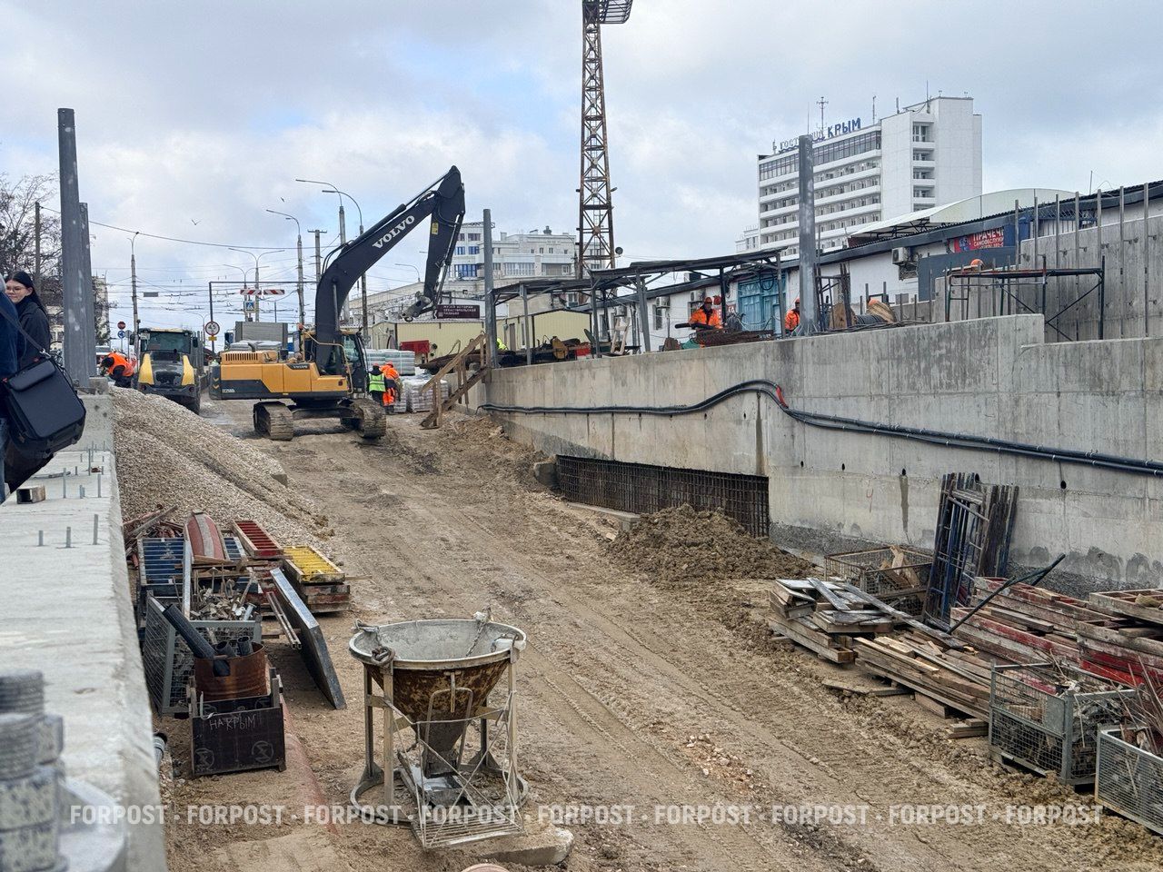Как сообщил журналистам заместитель начальника строительного управления АО «ВАД» по Севастополю Александр Куминов, готовность тротуаров и пешеходных проходов на сегодняшний день составляет около 40%, а общая готовность объекта — 76%. Сейчас завершаются монолитные работы и устройство ливневой канализации, после чего подрядчик переходит к формированию слоёв дорожного полотна.